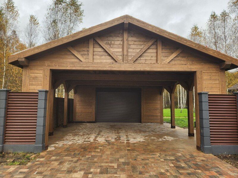Односкатный навес САЛБИ размером 10×5 метров с хозяйственным помещением создан для одновременного размещения двух автомобилей и организации зоны хранения. Лаконичная архитектура с наклонной плоскостью кровли обеспечивает эффективный отвод осадков при минимальном количестве строительных материалов. Каркасная система изготовлена из высококачественной хвойной древесины камерной сушки, прошедшей многоступенчатую обработку для достижения оптимального уровня влажности и стабильности размеров. Основные вертикальные стойки выполнены из массива бруса сечением 140×190 мм, а горизонтальные элементы — из бруса 140×140 мм, что обеспечивает достаточную прочность при сохранении эстетической привлекательности конструкции. Наружная обшивка представлена профилированной имитацией бруса 21 мм с замковым соединением шип-паз, гарантирующим плотное прилегание элементов и исключающим образование щелей даже при перепадах температуры. Внутреннее пространство хозблока отделано аналогичным материалом толщиной 16 мм, формируя функциональное помещение для хранения инвентаря и садового оборудования. Кровельная система оснащена финской гибкой черепицей Shinglas коллекции "Соната", обладающей высокой эластичностью и сохраняющей свои защитные свойства при экстремальных погодных условиях. Все деревянные компоненты подвергнуты комплексной обработке специализированными составами, обеспечивающими защиту от гниения, развития микроорганизмов и поражения насекомыми-вредителями. В комплектацию входят металлическая дверь с повышенной прочностью и деревянное окно с одинарным остеклением, обеспечивающее естественное освещение внутреннего помещения. По дополнительному запросу доступны альтернативные варианты кровельных материалов, включая металлочерепицу и фальцевые покрытия в различных цветовых решениях по шкале RAL. Конструкция адаптирована для установки на различные типы оснований: винтовые сваи, ленточный фундамент или монолитную плиту. Дополнительная опция — нанесение профессиональной пропитки Tikkurila Ultra, продлевающей срок службы древесины на 7-10 лет. Технологичная сборка с соблюдением всех строительных стандартов обеспечивает долговечность и гармоничное сочетание с любым архитектурным стилем участка.