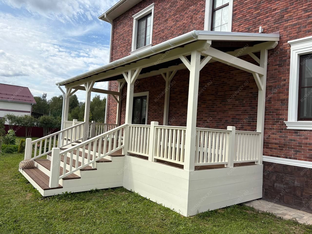 Конструкция изготовлена из хвойных пород древесины (ель, сосна). Сорт по лицевой стороне: АВ Материал -массив сухой строганый камерной сушки. Возможна замена: Материал - клееный брус +массив строганый камерной сушки или Лиственница..