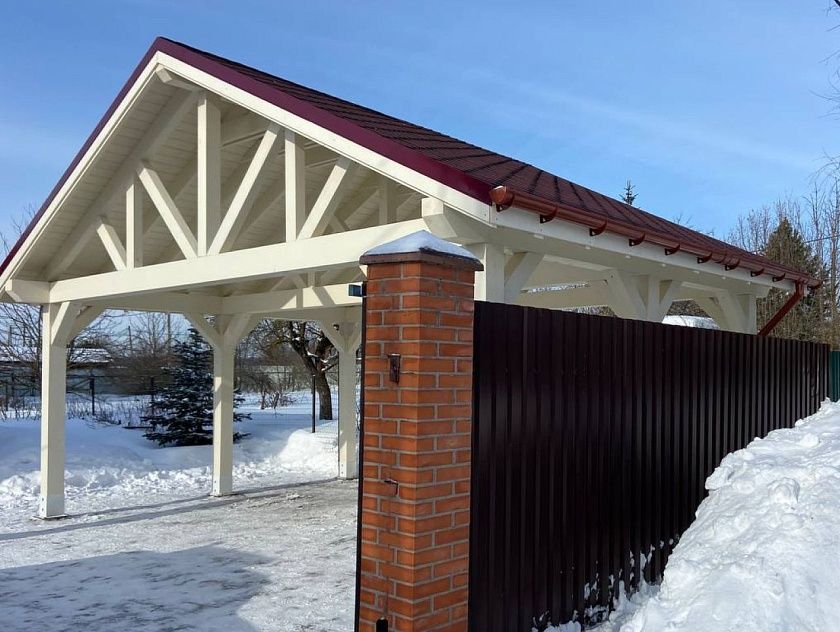 Компания «Русские навесы» – крупнейшей производитель навесов для одного автомобиля или нескольких единиц автотехники. В своих изделиях мы используем пиломатериалы из хвойных сортов древесины (ель, сосну), а в качестве конструктивного элемента – клееный брус.